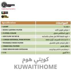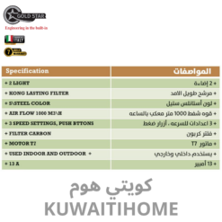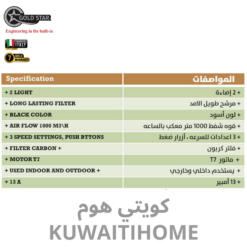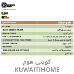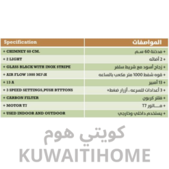 مدخنة 60سم اسود مع قوة 1000 متر مكعب كل ساعة