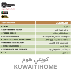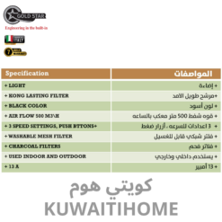 شفاط 90 سم اسود مع قوة 500 متر مكعب كل ساعة