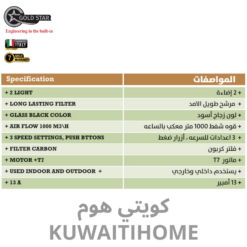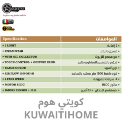 مدخنة 90 سم اسود مع قوة 1500 متر مكعب كل ساعة الجيل الجديد