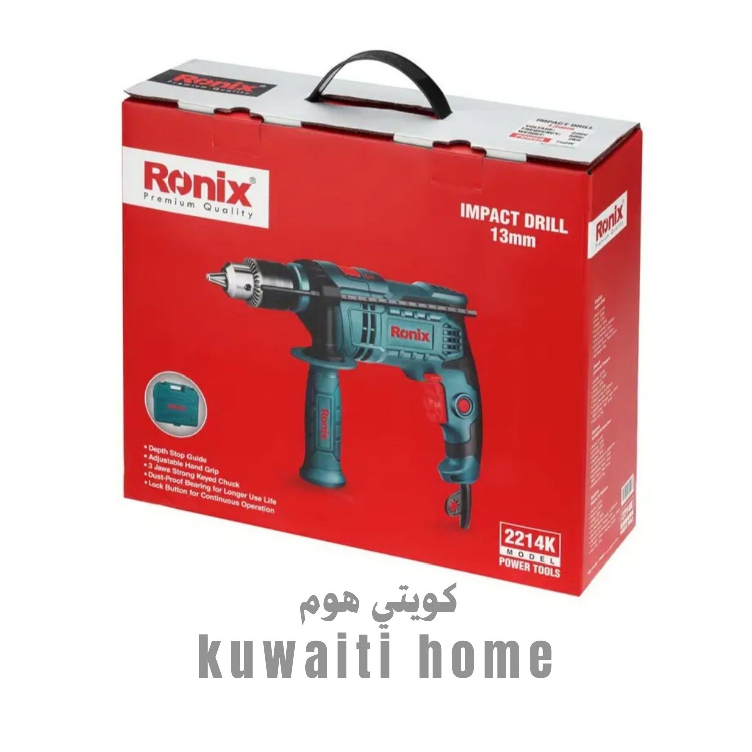 المثقاب المطرقي مع ظرف بمفتاح 13 ملم طراز 2214K من رونيكس، مناسب لمشاريع مختلفة في ورشة الحدادة والنجارة ومشاريع بناء وإصلاح وإعمار، إذ يتمتع بمحرك بقوة 750 واط يوفر سرعة تصل إلى 2800 RPM، تم صنعه وفقا للمعايير العاملية، بتصميم مدمج بحيث يزن 2 كجم فقط، ومقبض مريح دوار 360 درجة، مزود بزر التحكم في السرعة (الديمر) وزر اتجاه الدوران إلى اليمين واليسار.