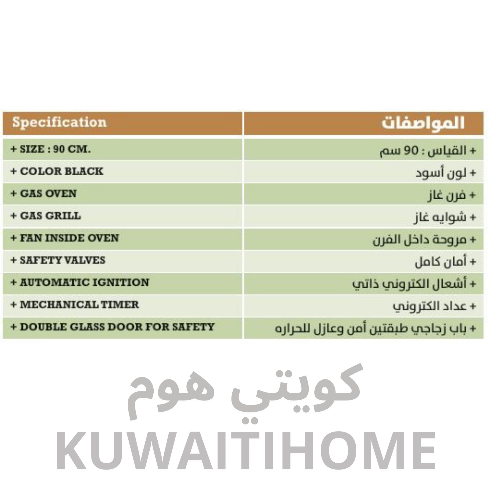 فرن غاز اسود 90 سم مع مروحه