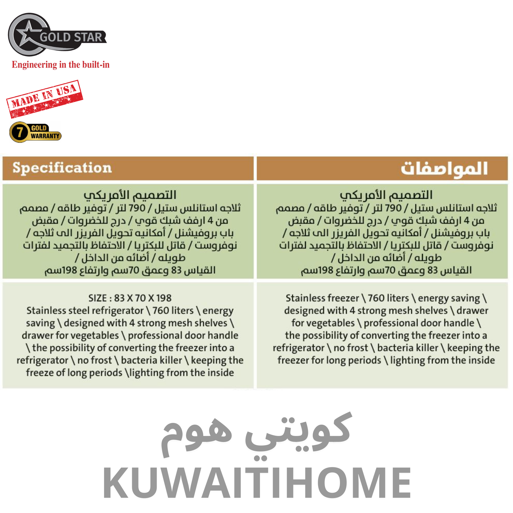 fREEZER  MODEL: GOLD-790F / REFRIGERATOR  MODEL: GOLD-790R